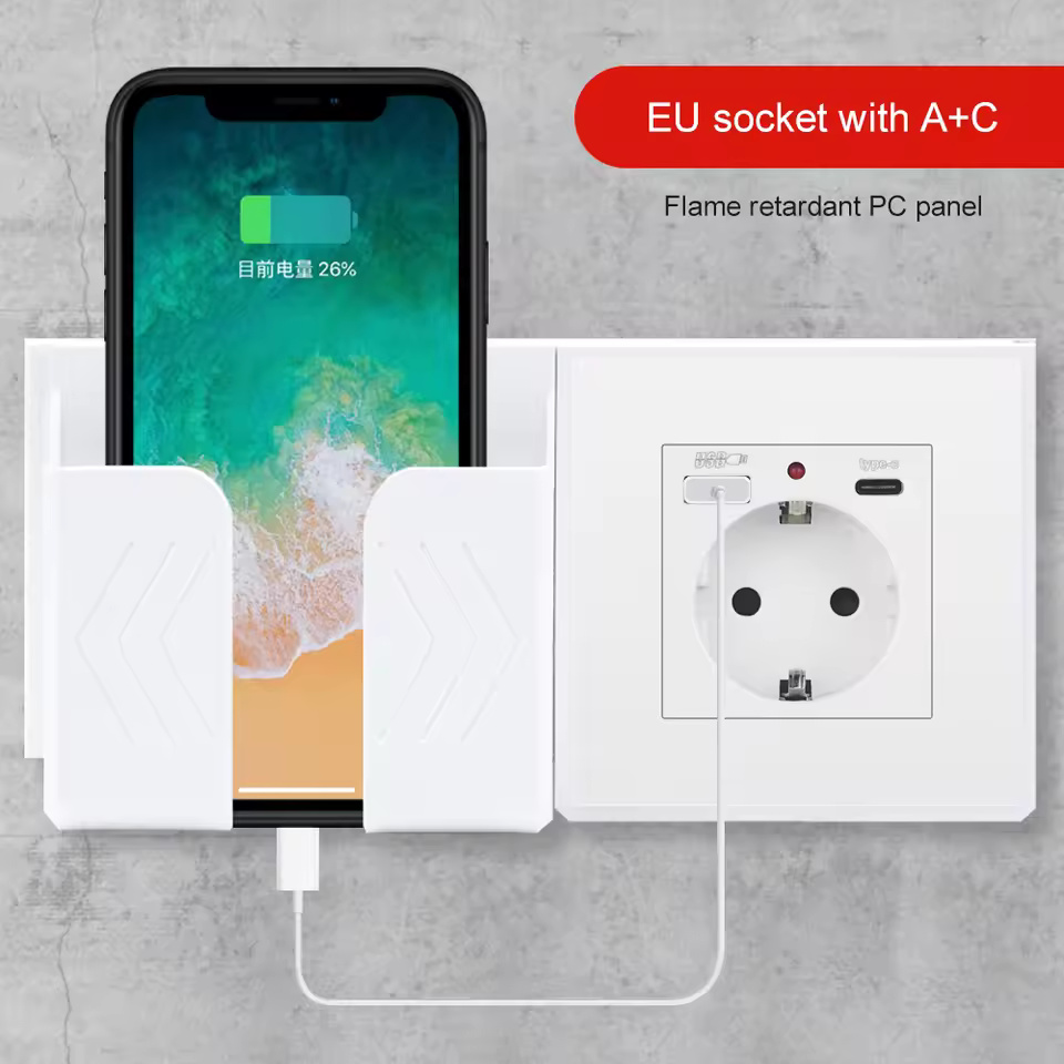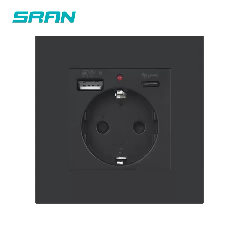 EU Power Socket ,Socket With Usb Charging Port and Type c 2.1A 16A Gray PC Panel 86mm*86mm Russia Spain Wall Socket SRAN